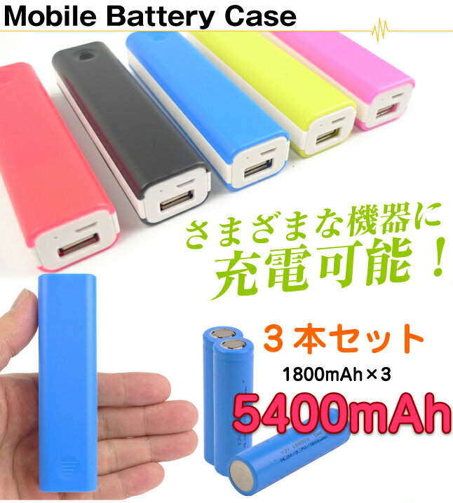 18650 リチウムイオン充電池 Li-ion!5400mAh大容量1800mAh×3!バッテリーケース!アイフォン5充電器!スマホ!モバイルバッテリー!携帯充電器!iPhone5s!iPhone5c!iPhone5!Apple!iPhone5!5s!5c!対応【メール便送料無料】532P17Sep16